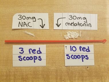 在任何情况下都强烈不建议使用目测法(Eyeballing)。 目测法是一种非常不准确的物质测量方法,涉及看着物质并对其重量进行粗略猜测。由于 10 mg 和 30 mg 在视觉上没有太大区别,这可能导致摄入过量。[5] 目测法有多种形式,包括使用微量勺和方格纸法。