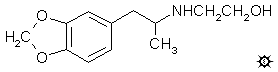 合成: 在搅拌良好的 25 g 乙醇胺盐酸盐溶于 75 mL 甲醇的溶液中,加入 4.45 g 3,4-亚甲二氧基苯基丙酮(其制备方法见 MDMA 条目),随后加入 1.1 g 氰基硼氢化钠。在接下来的几天里,根据需要加入溶于甲醇的浓盐酸,以通过外部湿润的广泛 pH 试纸测定保持 pH 值在 6 左右。将反应混合物加入 300 mL 水中,并用过量的盐酸使其呈强酸性。用 3x100 mL 二氯甲烷洗涤后,水相用 25%氢氧化钠碱化,并用 4x100 mL 二氯甲烷萃取。真空除去溶剂得到 3.5 g 粘稠的灰白色油状物,在 1.3 mm/Hg 下于 160°C 蒸馏,得到 2.0 g 白色粘稠油状物。釜残液保持流体状,但被丢弃。将该馏出物溶于 8.0 mL 异丙醇中,最终得到澄清溶液。用浓盐酸中和并用 100 mL 无水乙醚稀释。过滤除去形成的松散白色 3,4-亚甲二氧基-N-(2-羟乙基)苯丙胺盐酸盐 (MDHOET) 晶体,用乙醚洗涤并风干。重 2.3 g,熔点为 147-148°C。分析 (C12H18ClNO3) N。